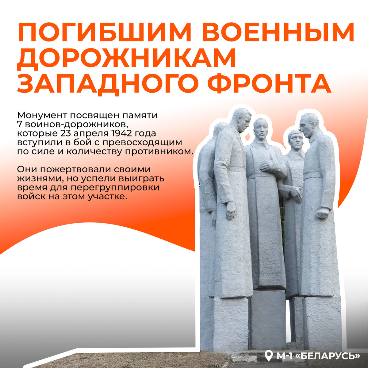 7 воинов-дорожников здесь приняли свой последний бой… 23 апреля 1942 года, отставив лопаты и кирки, воины-дорожники приняли бой с врагом у переправы, которую не успели достроить. Они погибли, но не отступили со своего рубежа.
