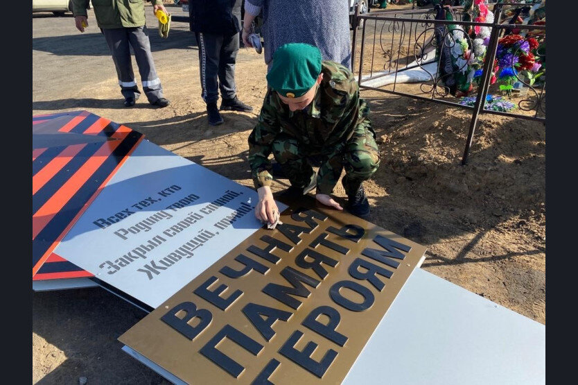 Команда молодых патриотов района провела акцию «Никто не забыт» на городском погосте, привела субботник на его территории, а затем завершила установку стелы на квартале, где захоронены воины разных лет.