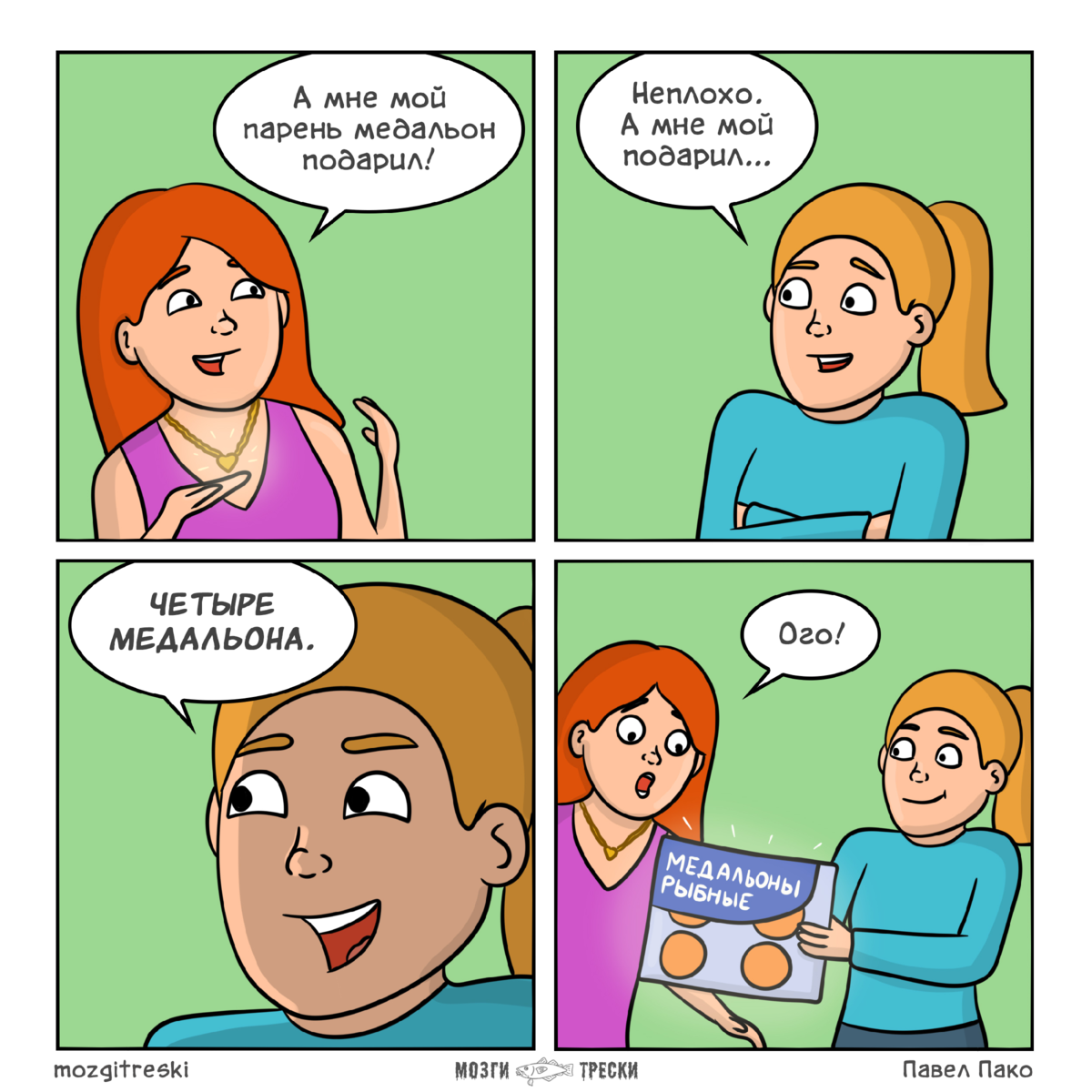 Ого, да это же снова подборка моих собственных работ, которыми я хочу с вами поделиться! Комиксов я в последнее время рисую много, так что и статей с ними в этом блоге стало побольше. А все потому, что сейчас я работаю сразу же над тремя сериями и обычно в течении недели выходит около пяти новых комиксов. Одна из этих самых серий, кстати, существует дольше всех и именно в рамках нее вышли комиксы, которыми я хочу с вами поделиться на этот раз. Надеюсь, что мои зарисовки вам понравятся! Для начала как обычно на всякий случай представлюсь - меня зовут Павел Пако, я рисую комиксы, а еще веду этот блог. Мой самый долгоиграющий проект - это серия комиксов Мозги трески. Мозги трески выходят с конца 2016 года - новые выпуски появляются в сети каждый понедельник в таких соцсетях, как ВКонтакте и Телеграм. Ну а здесь я выкладываю комиксы серии, когда их накапливается достаточное количество для подборки. Кажется, о серии Мозги трески в интернете я уже успел рассказать все, что только было можно.