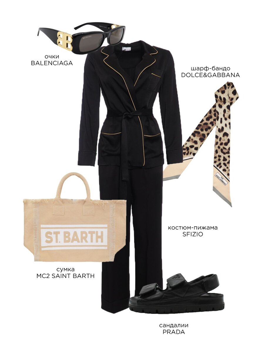 Впереди сезон отпусков. Работа работой , а отдых по расписанию. Сегодня мы предлагаем для вас варианты отпускных образов на целый день. Образ 1. На завтрак. Расслабленный, комфортный, удобный. Пижамный костюм, как никто другой справится с задачей обеспечить Вам уют и комфорт. Начните свой день, спокойно, не спеша. Насладитесь видом и атмосферой. Сандали, Очки, Сумка, Костюм , Платок Образ 2. Прогуляться по пляжу. После завтрака, самое время прихорошиться и отправиться на утреннюю прогулку. Вооружитесь самым удачным решением- платье рубашка в тандем с плетеной сумкой от Zimmerman. Платье, Очки, Сандали, Сумка, Серьги Образ 3 Элегантный пляжный лук, не оставит Вас не замеченной. Купальник в сочетании с леопардовой косыночкой сделает Ваш образ не только ярким , но и трендовым. Шлепки, Купальник, Платок, Очки, Серьги Образ 4. Что делать после пляжа? Конечно отправится на шоппинг. Предлагаем Вашему вниманию не только удобный , но и теплый образ, чтобы не замерзнуть в торговых центрах