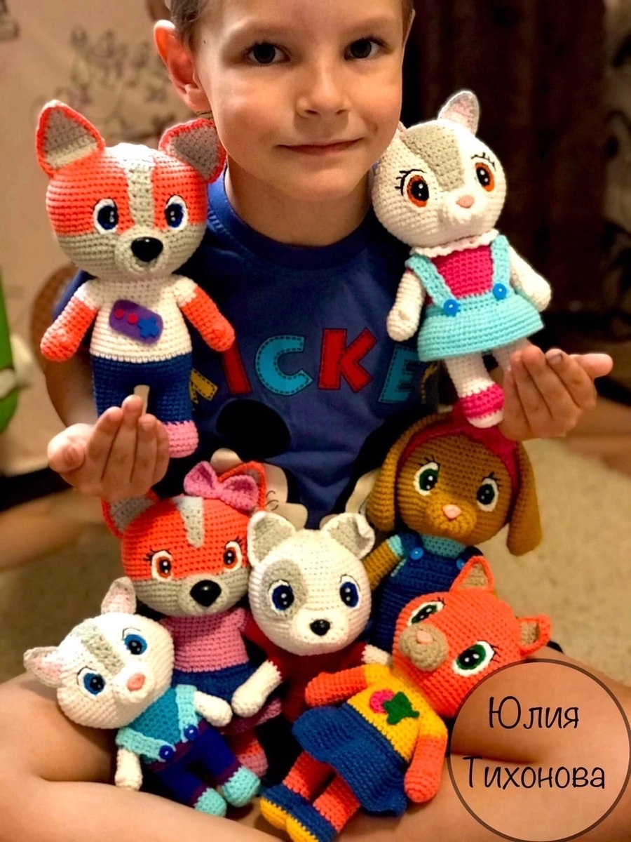 Сегодня я вам расскажу про свою любимую серию игрушек. Милые большеглазые зверюшки не оставят никого равнодушным . В серии 7 героев - котята и щенки . Рост их 23-35 см , глазки вышиты и раскрашены акриловыми красками . Носики слеплены из полимерной глины Одежда не съёмная На все игрушки есть МК ☺️