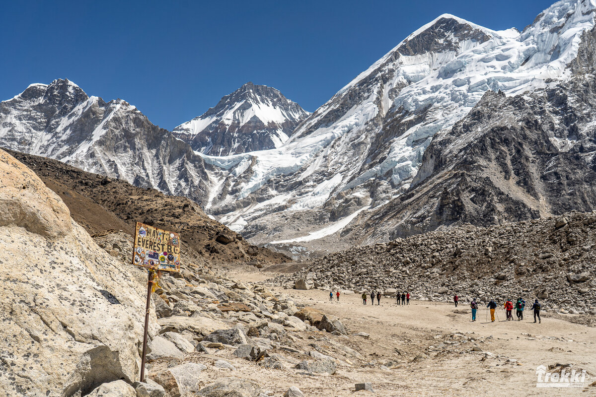 Эверест! Мечта любителей гор, крыша мира, самая высокая гора планеты высотой 8848 м. Южный базовый лагерь находится со стороны Непала на высоте 5364 метра. Хотя известный камень, где все фотографируются сполз уже метров на 100 вниз вместе с ледником. Есть ещё северный лагерь на территории Тибета на высоте 5150 м, к нему можно подъехать на автомобиле. А вот с непальской стороны доступность только пешая. Ну или на вьючных животных. Трекинг не самый простой, но очень живописный и аутентичный.