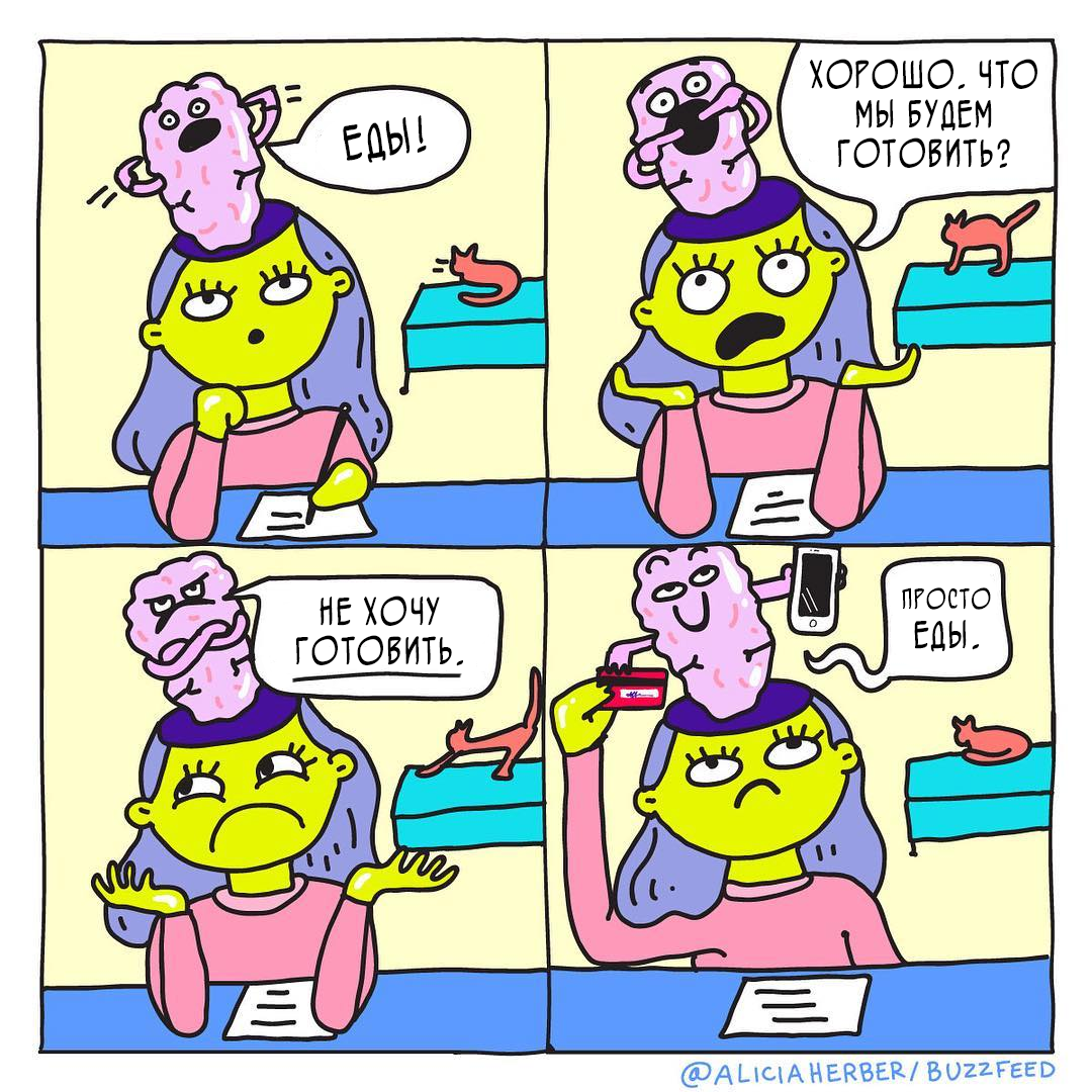 Жизненные комиксы от и про миллениалов - это уже, можно сказать, отдельный жанр. Так уж сложилось, что большинство современных популярных художников веб-комиксов плюс-минус одного возраста, а значит и проблемы, о которых они рассказывают, чаще всего сходятся. Как стать «настоящим» взрослым? В чем прелесть отношений? Где найти силы и мотивацию что-то делать? И главное - как понять своего питомца? Таких сюжетов в сети уже полно, но они никогда не перестанут быть актуальными, потому что жизненный юмор всегда хорошо заходит читателям. И героиня сегодняшней статьи как раз является отличным примеров автора, умело справляющегося с жанром «жиза». Алисия Хербер (Alicia Herber) - это художница и видеопродюссер из Остина, штат Техас. В сети Алисия больше известна в качестве автора юмористических видеороликов - в свое время она была очень популярна на сайте Vine. В 2017 году девушка начала работать в команде развлекательного портала BuzzFeed в качестве креативного видеопродюсера. В дальнейшем Алис