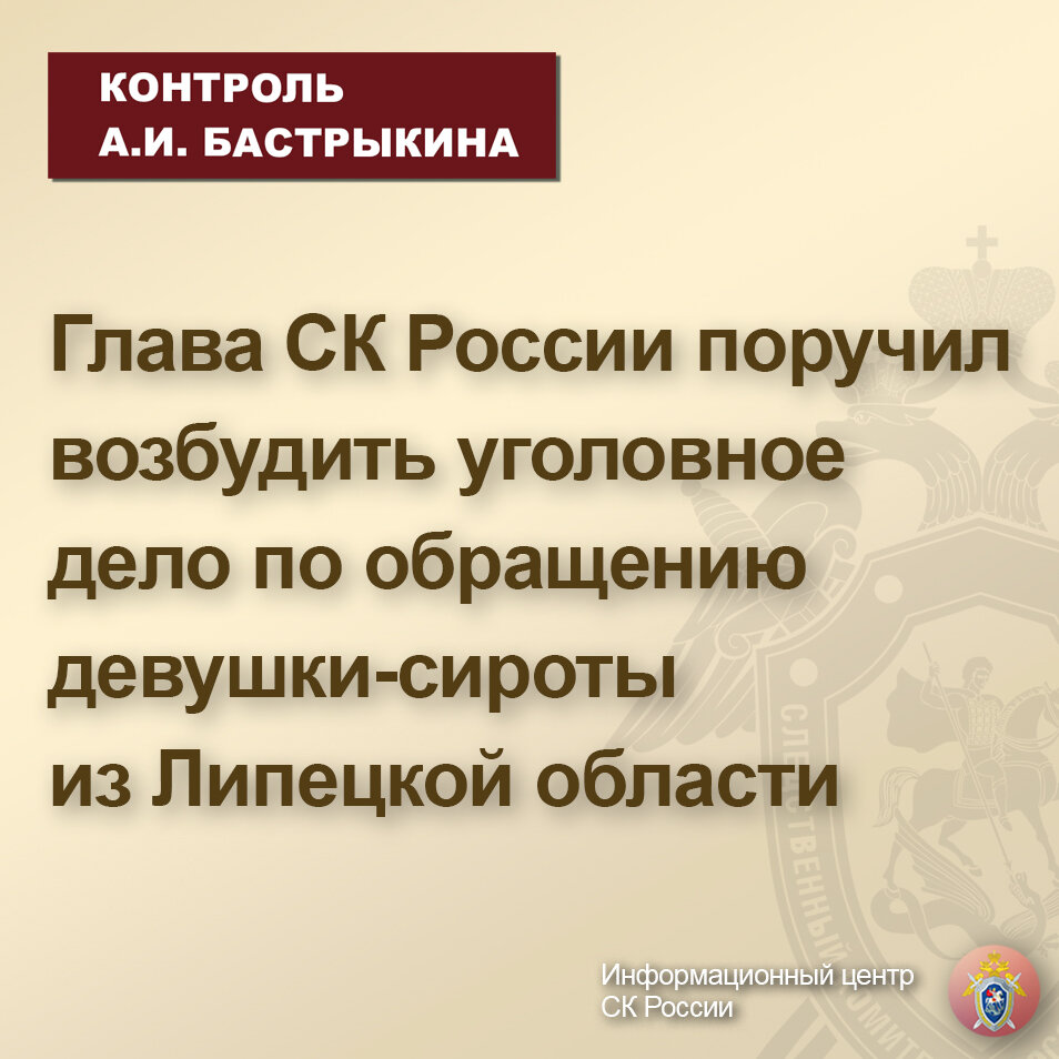 Председатель Следственного комитета Российской Федерации Александр Иванович Бастрыкин поручил руководителю СУ СК России по Липецкой области Евгению Владимировичу Шаповалову возбудить уголовное дело, проверив следственным путем все озвученные в публичном пространстве доводы, принять необходимые меры к восстановлению жилищных прав сироты, а также представить доклад о предварительных и окончательных результатах расследования.