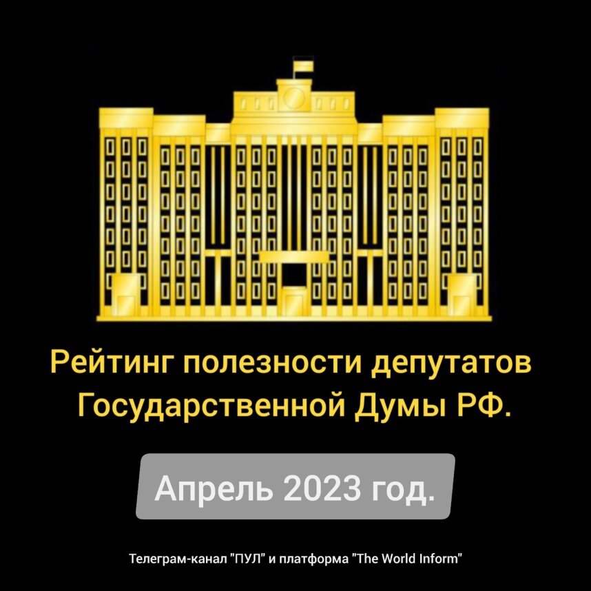 На основе данных мониторинга проводится оценка депутатов Государственной Думы РФ, в результате которого выделяются наиболее эффективные народные избранники. В критерии оценки входят показатели: активность и инициативность, соотношение негативных и позитивных отзывов и комментариев, обратная связь в социальных сетях и мессенджерах с населением, индекс цитирования в (СМИ, сообществах и каналах), прочее. АПРЕЛЬ 2023 ГОД. 1. Евгений Попов.