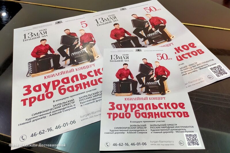 В Курганской областной филармонии 13 мая состоится концерт, посвящённый 50-летию со дня образования Зауральского трио баянистов и 15-летию деятельности трио в нынешнем составе (6+).