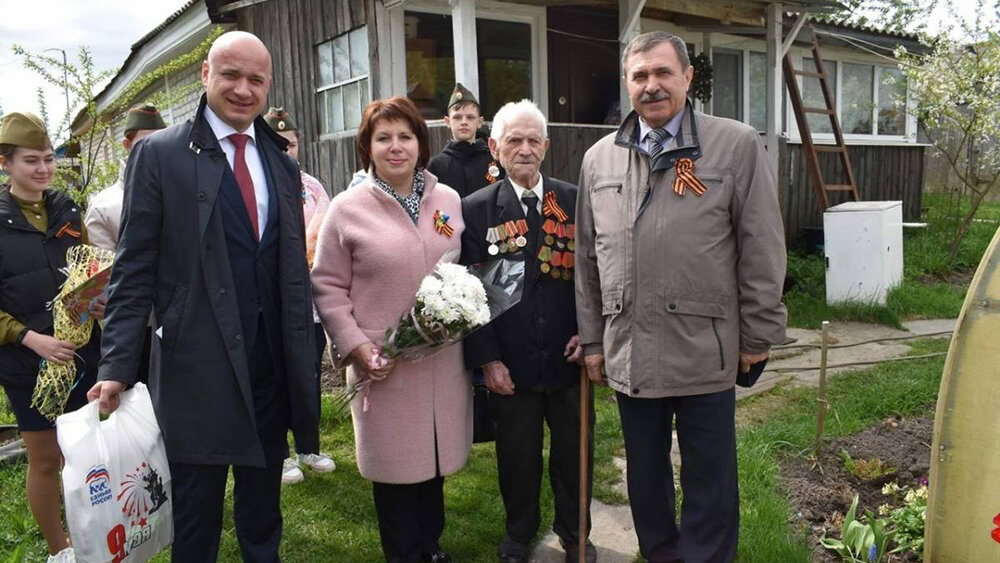 В преддверии праздника делегация, в состав которой вошли депутат облдумы Жутенков, а также ученики местной школы, работники культуры и районной администрации, навестила ветерана Алексея Новикова из Жирятино.