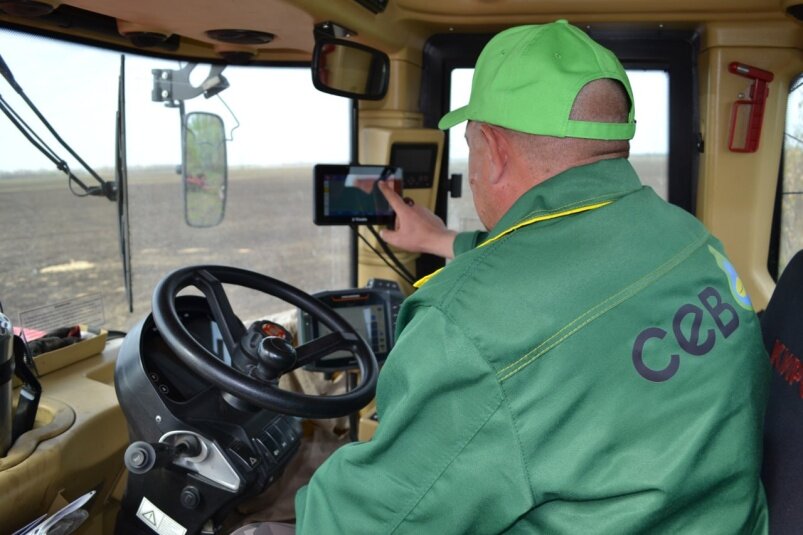 Если говорить о качестве посева, то на тракторе у нас установлено подруливающее устройство, сама сеялка оснащена комплексом ISOBUS – электронной системой, осуществляющей автоматический контроль нормы высева семян и внесения удобрений, что позволяет работать с высокой точностью по заданным участкам поля, избегая перекрытий и огрехов.