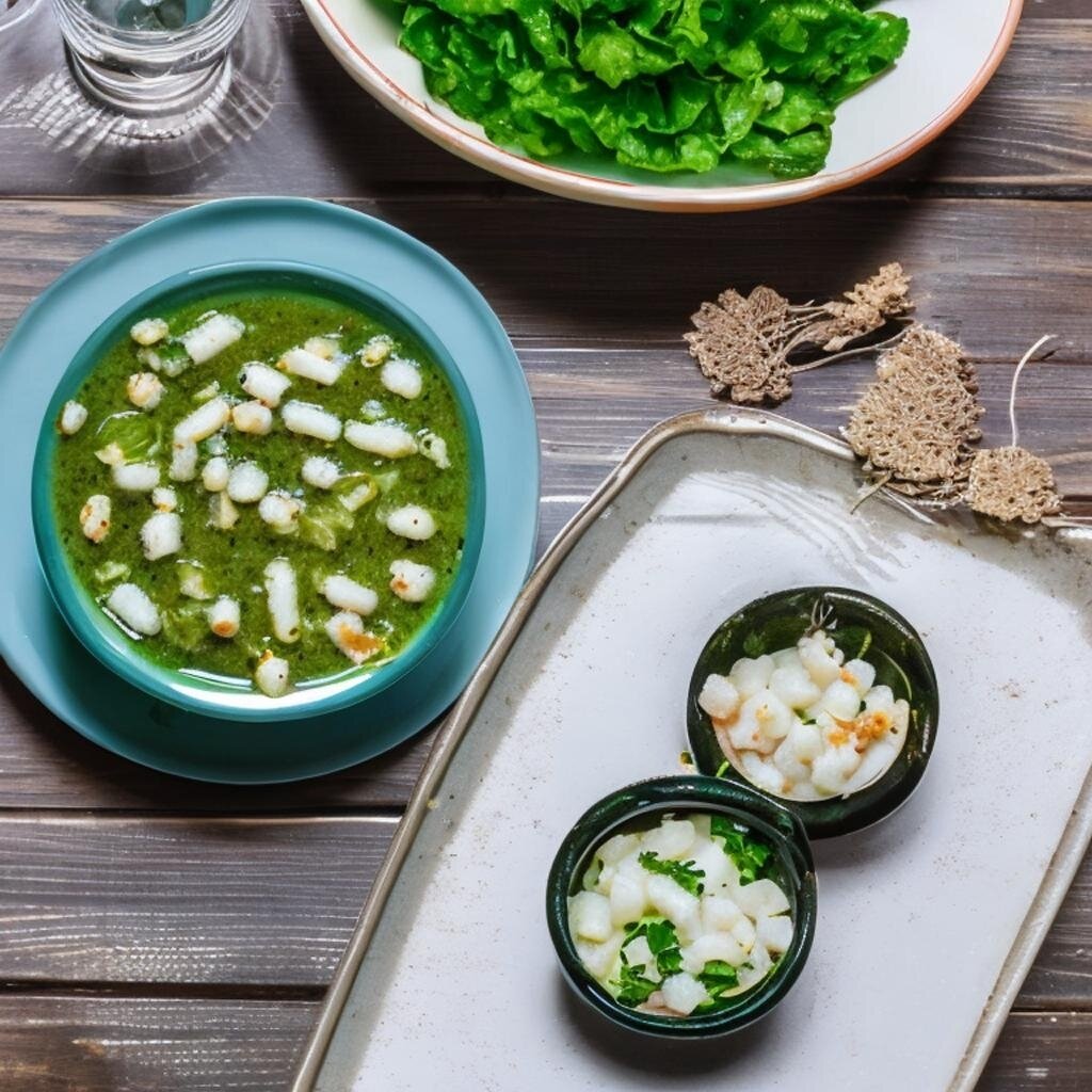 "Классическая холодная окрошка с квашеной капустой и ветчиной"