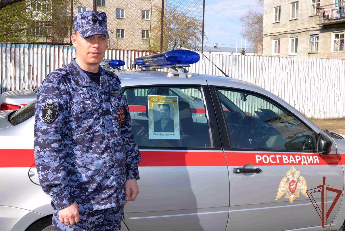 Узнав о новом формате проведения ежегодного патриотического проекта, росгвардейцы подготовили портреты героев и разместили их на автомобилях.