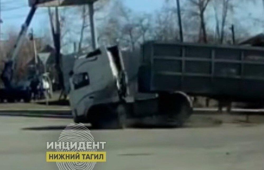 Водитель многотонника попал в дорожную ловушку на оживлённой дороге в Нижнем Тагиле. Инцидент произошёл еще в пятницу на перекрёстке улиц Свердловское шоссе–Красногвардейская–Садоводов. Грузовик при повороте въехал в лоток ливневой канализации. Момент ДТП попал на видео.