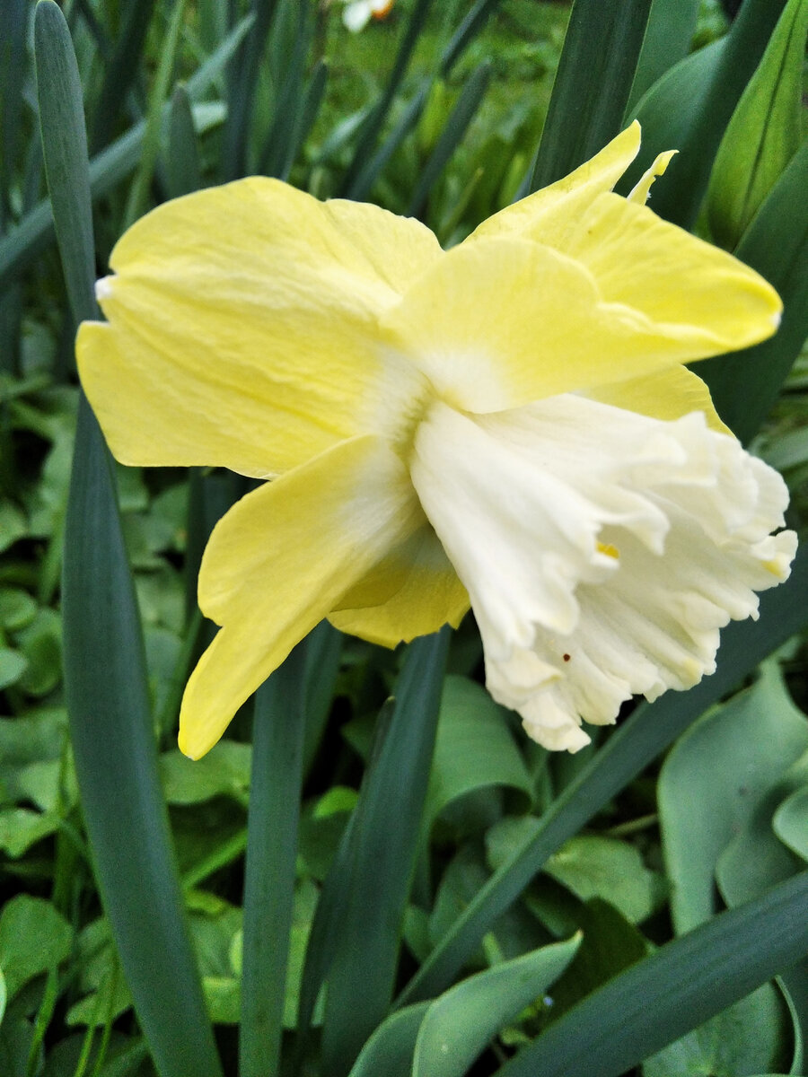 Расцвёл "нарцисс-наоборот" - чаще встречаются с жёлтой серединкой и белыми лепестками. Вовсю цветут анютины глазки в альпинарии. Зачем я их туда посадила? Сфотографировала и убрала. Зацвела яснотка - почвопокровное растение, посаженное ради красивых листочков. Но цветочки тоже ничего. У меня сегодня был прилив трудового энтузиазма. Посадила актинидию 'Адам' и накрыла банкой. Это не от мороза, а от кошек! Меня предупредили, что они могут сгрызть молодые саженцы целиком. Еву, когда пришлют, тоже так накрою. Посадила княжик, который стоял у меня в горшке с марта и сначала активно рос и радовал, а потом как будто заскучал. Вообще я начинаю думать, что мне ещё рано сажать княжики - слишком сложны в уходе. Первый, купленный в сентябре, просто не вышел из зимовки. Второй посажен, но вызывает беспокойство. А третий, самый дорогой, практически загнулся. То есть, ещё теплится, но выглядит с каждым днём всё хуже. Зато рудбекия 'Золотой шар', которую я откопала у соседей, наверняка прижив