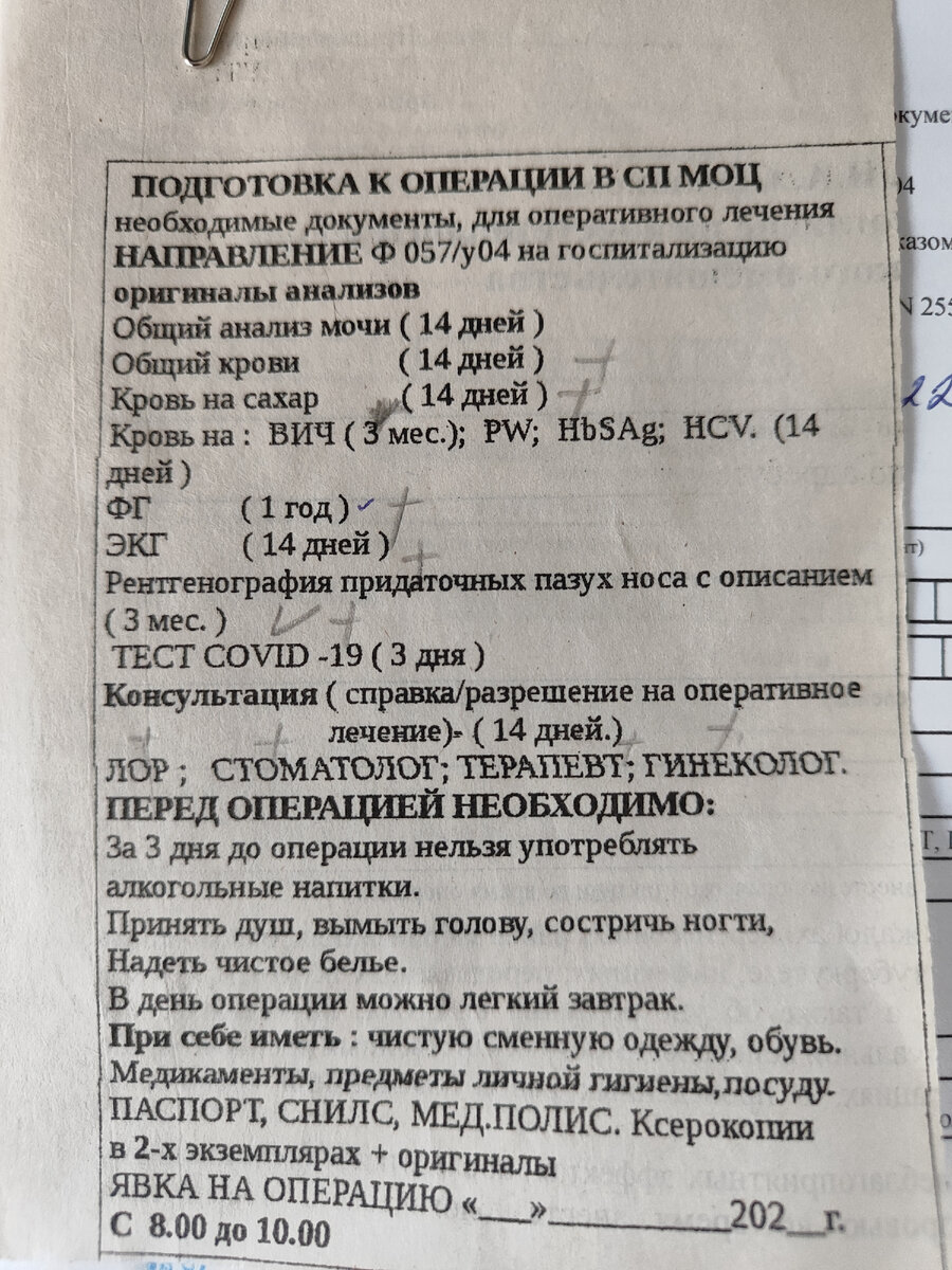 Собирала и делала столько анализов, как будто, у меня хирургическое вмешательство во все тело будет. Сами посмотрите, сколько всего указано на бумажке, и я все это собрала. Не без приключений, конечно. За все это время я много раз ловила дикий стресс в поликлинике в очередях в борьбе за право зайти по талону. Может почитать эту эпопею ниже по ссылкам: Все началось с заблаговременных анализов на ВИЧ, которые делаются аж в Симферополе, а не у нас в поселке. Сдала во время. По пути сделала рентгенографию пазух носа и взяла справку о флюорографии, которую я делала в этом году. Дальше мне медсестра сказала ждать и за две недели явиться опять к офтальмологу, чтобы получить направления на остальные анализы, которые действуют две недели. Как только время подошло, я побежала сдавать кровь, мочу, ЭКГ, прошла ЛОРа, стоматолога, гинеколога. На болезнь, которую нельзя называть тут, я сдавала за три дня и день раньше забрала все анализы готовые у офтальмолога, и записалась к терапевту, заблаговр