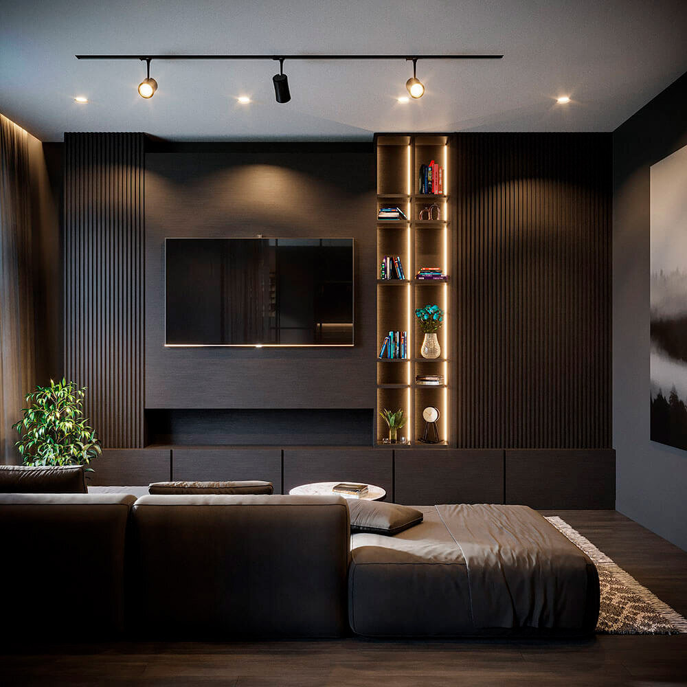 Для оптимального освещения комнаты мощность электроприбора подбирается из расчета 20 Вт на 1 м2 при высоте потолков до 3 м. Но это не значит, что освещать 20-метровую комнату нужно одной мощной потолочной люстрой, не оставляя темных углов. Гостиная — многофункциональное помещение, где световой сценарий включает: