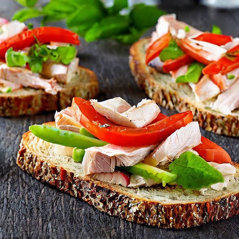 Тосты с копченой курицей и овощами - это простое и быстрое блюдо, которое можно приготовить на завтрак или перекус. Вот рецепт и калорийность на 1 порцию (2 тоста):