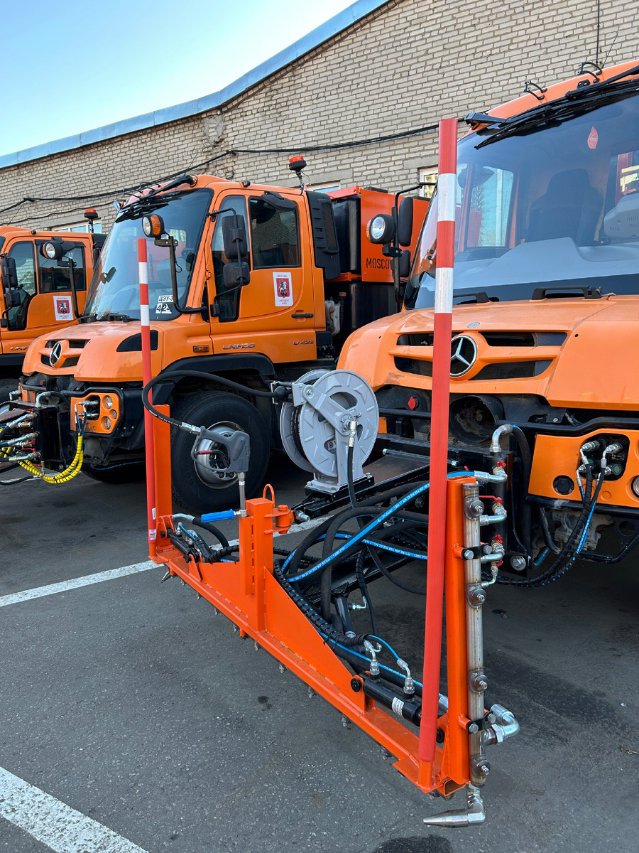 Рейка высоконапорная (мойка фронтальная) на КДМ Mercedes, КамАЗ, МАЗ, ГАЗ от завода НПО «МосУдарник». Пистолет высоконапорный По всем вопросам звоните 495 740-23-22, www.mosudarnik.ru, e-mail: info@npo-mosudarnik.ru