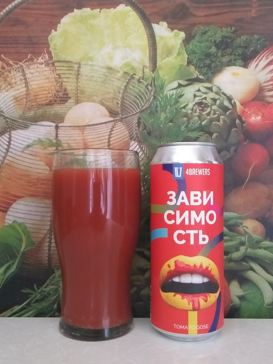 Приветствую всех на моём канале! Продолжаем тему "Зависимости". Сегодня речь пойдёт о томатном гозе. На канале уже вышли несколько обзоров, посвященных "томаткам" из линейки "Зависимость" от владимирских пивоваров. Ранее я успел рассказать читателям канала об "Острой Зависимости" и "Зависимости [Болгарский перец]". Настало время для написания статьи о классическом варианте томатного гозе. "Зависимость" Пивной напиток непастеризованный нефильтрованный неосветленный Состав: вода питьевая, солод пивоваренный ячменный, солод пивоваренный пшеничный, томатная паста (томат), лактоза, соль поваренная пищевая, базилик, паприка, кориандр, хмель прессованный, дрожжи пивные, сорбат калия (Е202) Объем: 0,5 л. Изготовитель: ООО "Четыре пивовара" (г. Владимир) Цена: 249 рублей Дата розлива: 02.02.2023 Дегустация: Май 2023 года Дизайн у всех "томаток" из линейки "Зависимости" в целом стандартный. На этикетке мы видим традиционные жёлтые губы, испачканные томатной пастой, на ярко-красном фоне. Выгляди