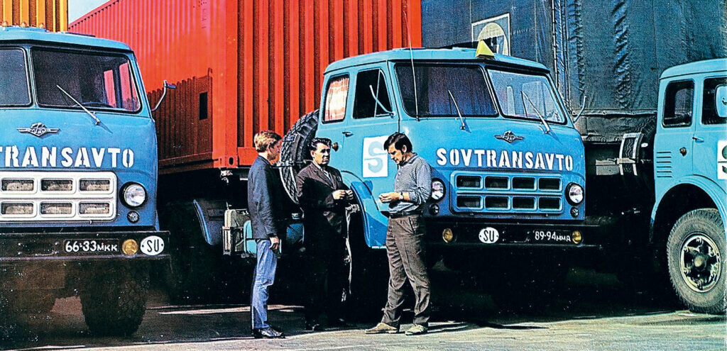 В 1968‑м международные автоперевозки Советского Союза начинались с решения сформировать парк из 300 автопоездов. Прошло 12 лет, и в год Московской Олимпиады-80 флот седельных тягачей с полуприцепами увеличился до 2000 ед. И это были уже не только отечественные грузовики и прицепной состав, но и импортный подвижной состав как из соцстран, так и из государств с капиталистическим строем.