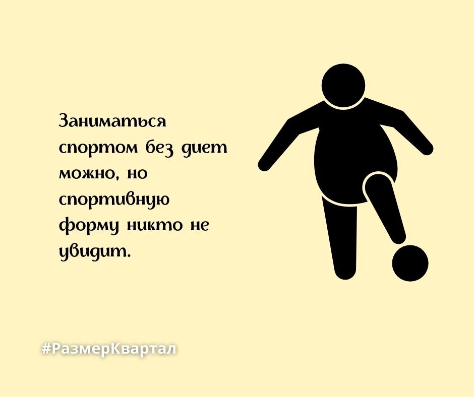 Заниматься спортом без диет можно, но спортивную форму никто не увидит. Самодостаточный спорт Самодостаточный человек, который занимается саморазвитием для себя без оглядки на окружающих и на здоровье, может заниматься спортом без диет и без следов тренировок на теле. Такие люди говорят: для меня главное самочувствие и нравится самому себе в зеркале. «Полюбить себя в зеркале» – этому учат психологи, а поддерживать самочувствие и настроение таблетками – учат врачи. Если на таблетках захотелось заняться спортом, а потом заесть спорт и стресс сладким, то этому никто не мешает, ибо самодостаточный человек самодостаточен во всём, а значит в советах и запретах не нуждается. Каким спортом можно заниматься без диет? Тренировки – это маленькая часть спорта. У спортсменов, кроме тренировок, есть соревнования. Без диет можно заниматься любым спортом, кроме бодибилдинга. Только бодибилдеры считают калории, режут угли и выводят воду к соревнованиям. Борцы и боксёры просто выводят воду, а спортсмен
