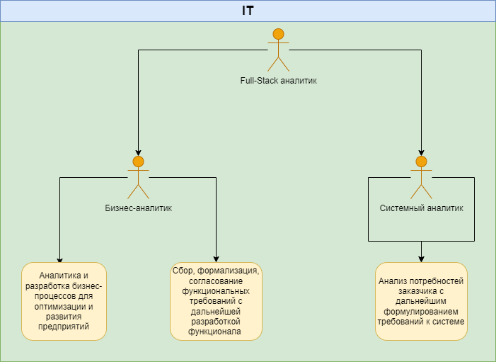 Аналитика это отдельная ветка общей структуры IT-индустрии. Аналитика - обширное понятие, под которым можно понимать как решение задач в области развития бизнеса, так и разработку новых IT-продуктов либо доработку готовых, для предприятий разных областей. Какие бывают аналитики. Когда такая профессия, как аналитик только начинала зарождаться не имела никакой градации, был просто пул задач, который специалисты должны были выполнять. Изначально деятельность аналитика, в основном, заключалась в работе с большими объемами данных, ну про крайней мере себе представлял именно так. С годами пул задач стал расширяться, в связи с чем и появилось деление на категории специалистов. На сегодняшний день существует три категории специалистов: Бизнес-аналитик Основная деятельность бизнес-аналитика построена на оптимизации работы заказчика за счет построения диаграмм в виде специальных нотаций (о которых поговорим в следующих статьях) либо разработки/доработки IT-продуктов, которыми пользуется заказчи