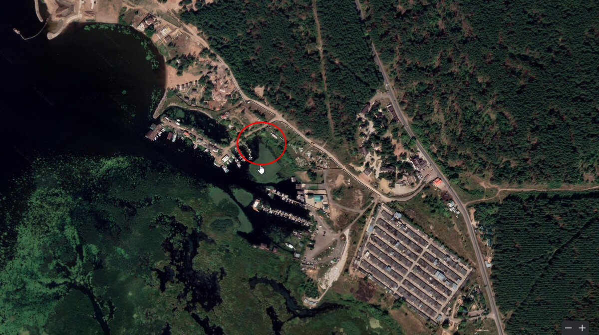 А это более крупный её фрагмент. Цифрой 1 обозначено место осенне-зимне-весенней стоянки (на берегу), цифрой 2 обозначено место стоянки "Каламбура" на воде, в период навигации.