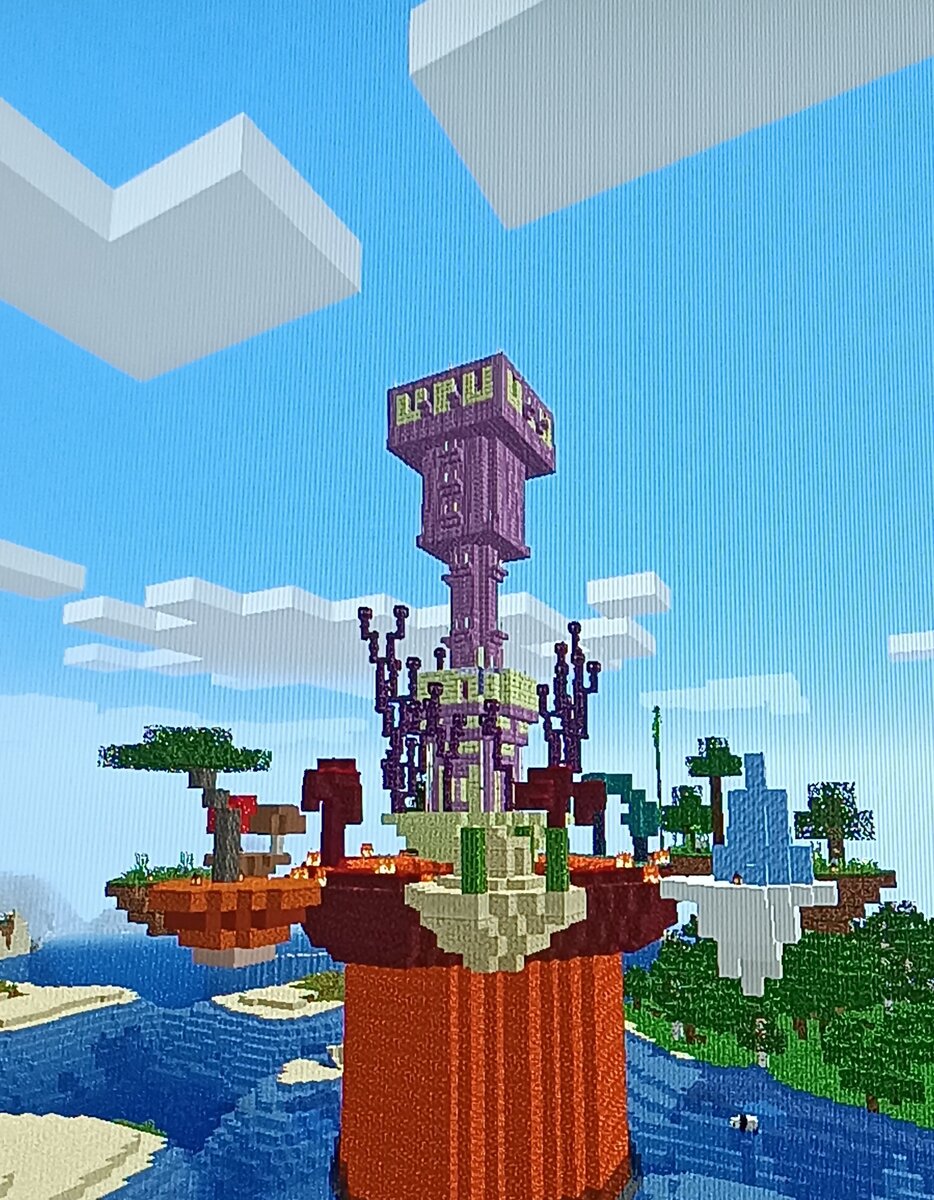 Hello, всем привет, добрый вечер, здравствуйте. Сегодня мы поговорим о моём королевстве в Майнкрафт. 1. Строение из биомов. И да строение из биомов это: В середине у нас большой остров из эндарнека и собственно это эндр мир. В башне которая находится на этом эндр острове есть этаж с зачаровкой вещей, Большой обзор. Так же есть биомы как: дубовый лес. Еловый лес, ледниковый биом, пустыня, засохшая пустыня, грибной биом, тропический. И всё Кстати вот фото этого строения : Согласитесь что красиво. А вокруг эндр биома есть круг и мира АДА и через него стекает Лава. 2. Парк аттракционов. Это огромный парк в котором есть большое обзорное колесо, статуя по типу статуи свободы, а также красивая речка около которой зона отдыха. А вход возведён на холмике который спускается к парку. Очень много деревьев которые подсвечиваются ночью. Вот фото этого парка аттракционов : 3. Небольшая деревня. В этой деревне есть пока что только 4 дома это: кузница, глобус, вышка, и недострой церковь. В кузнице
