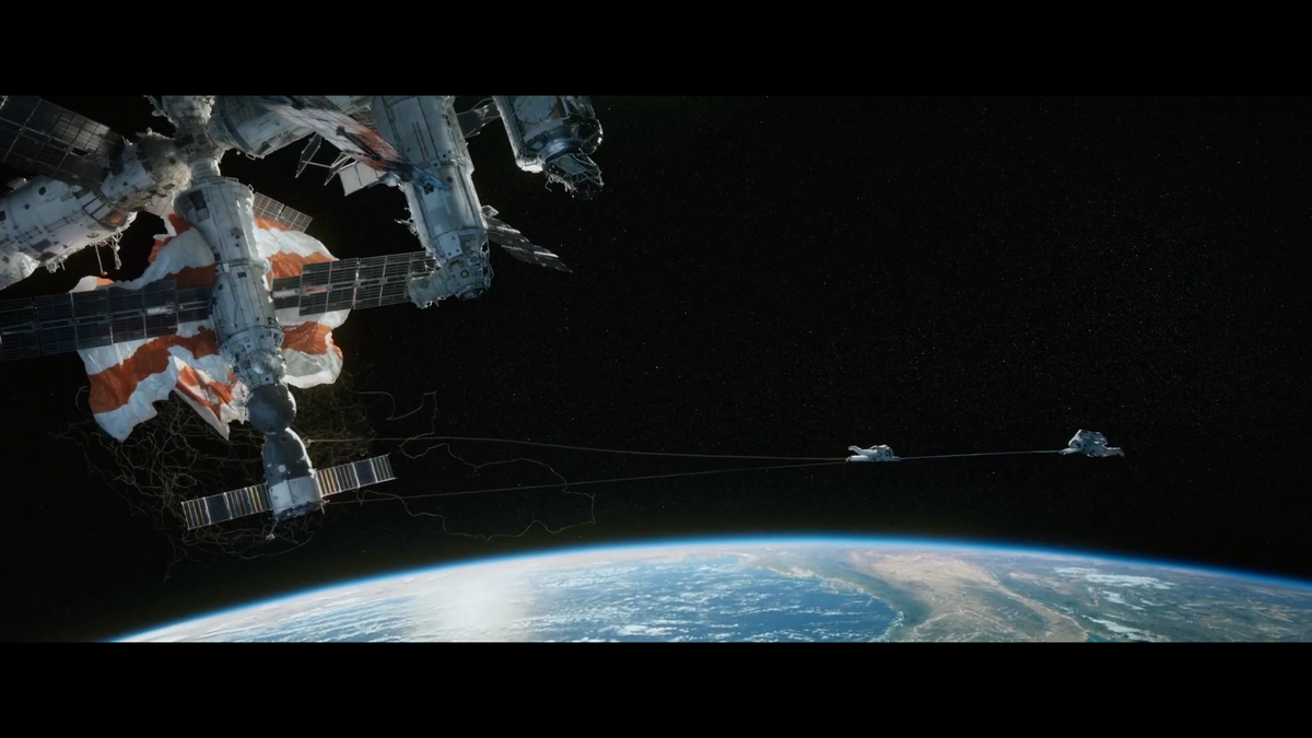 Пусть вот станция на кадре выше на самом деле вращается - и Клуни улетает из-за центробежной силы.