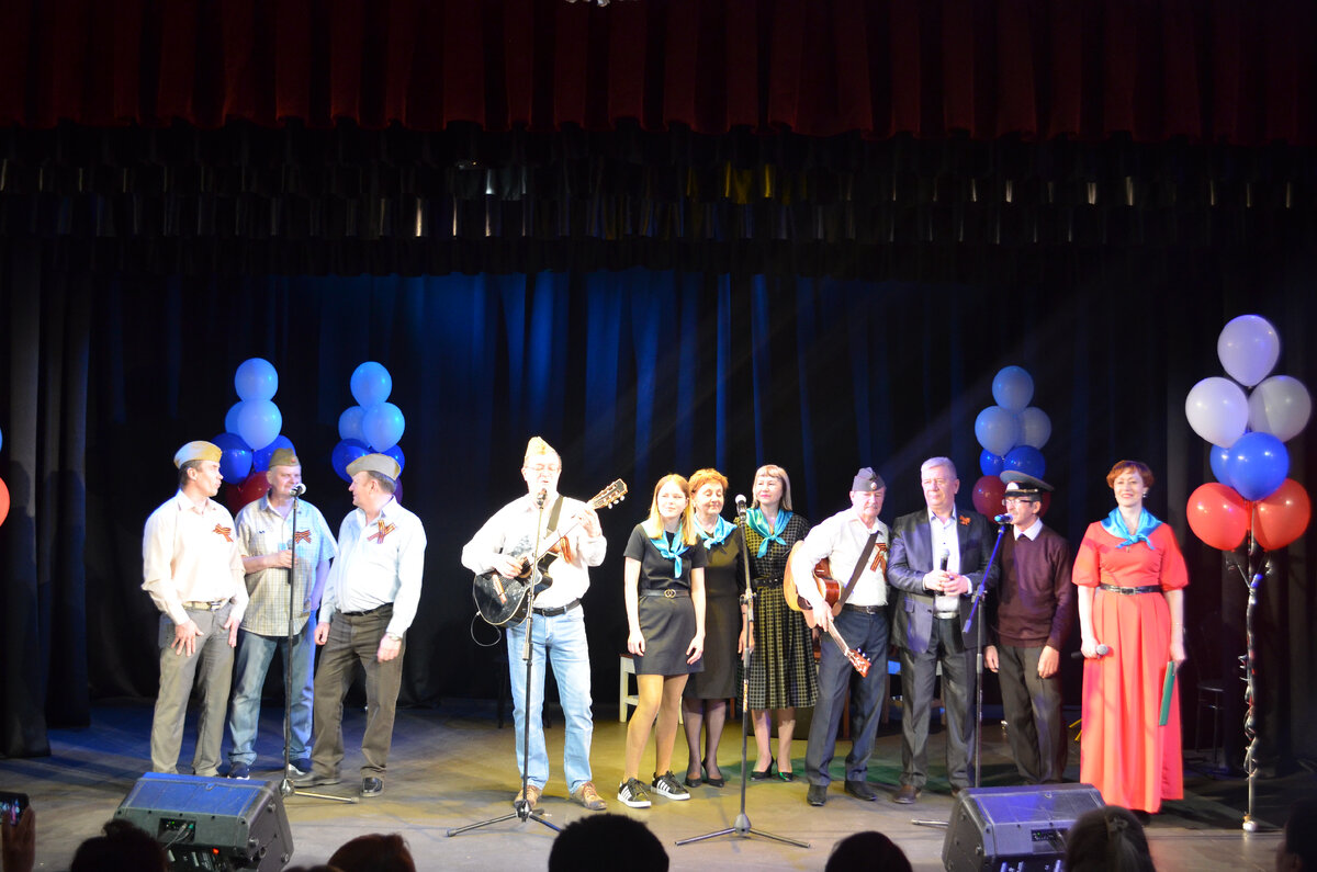 78 лет прошло со дня окончания самой страшной и разрушительной войны. Наша страна давно залечила раны. Заколосились хлеба на истерзанной земле. Из руин поднялись современные города. Но каждый год день 9 Мая отмечается всей страной как ДЕНЬ ВЕЛИКОЙ ПОБЕДЫ, ДЕНЬ РАДОСТИ И ТОРЖЕСТВА, БЕССМЕРТНОЙ СЛАВЫ И СВЕТЛОЙ ПАМЯТИ ГЕРОЕВ. По многолетней традиции накануне Дня Победы в Городском доме культуры им.Н.Островского прошел праздничный концерт Клуба бардовской песни «Встреча». Любовь Королева, Наталья Решетнева, Александр Пипчук, Сергей Гусев, Дмитрий Демин, Людмила Калинкина и другие артисты пели о войне и про войну и, конечно, о любви. Это были «Ах, эти тучи в голубом» И. Блантера, «Снегири» Ю. Антонова, «Воспоминание о пехоте» Ю. Визбора, «Журавли» Я. Френкеля, «Давно мы дома не были» В. Соловьева-Седова, «Казаки в Берлине» братьев Покрасс и другие.