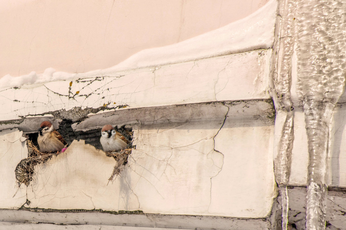 Живу я в старом деревянном доме. Несколько лет назад где-то за наличником окна моей спальни воробьи свили гнездо. Снизу его не видно, но слышно очень хорошо. И теперь мы всегда в курсе всей их личной жизни. С ранней весны слышно, как они там скребутся, ремонтируя гнездо. Сразу после ремонта начинается безостановочное чив-чив. Это воробей в готовое гнездо приглашает самочку. Однажды, устав слушать бесконечное чив-чив я сказала мужу: - Несчастный воробей, зовёт-зовёт, а найти никого не может. На что муж мне возразил: - А откуда ты знаешь, что он несчастный? Может наоборот ему очень повезло и теперь он хвалится своей победой. Вот такая она - мужская содидарность! Картинки из интернета просто для иллюстрации, мы своих только слышим.