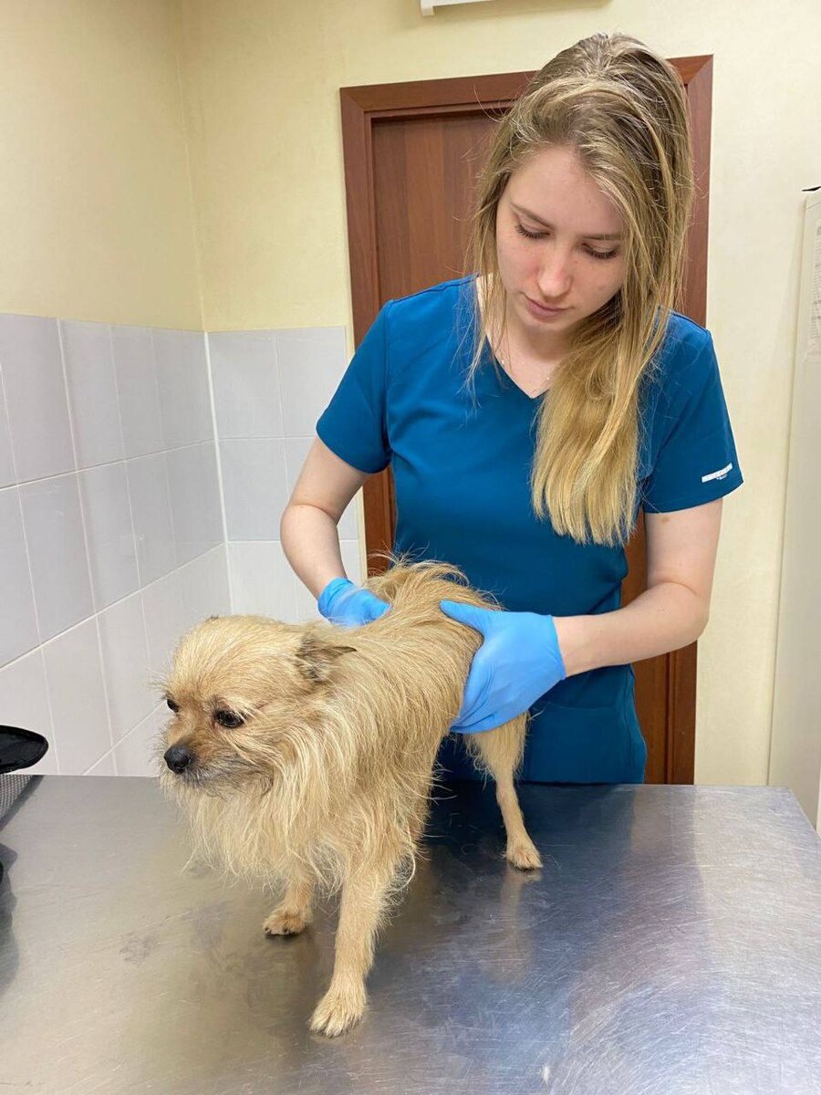 К нам приехало грязное всклокоченное существо с искривлённым позвоночником и прихрамывающими задними лапками.