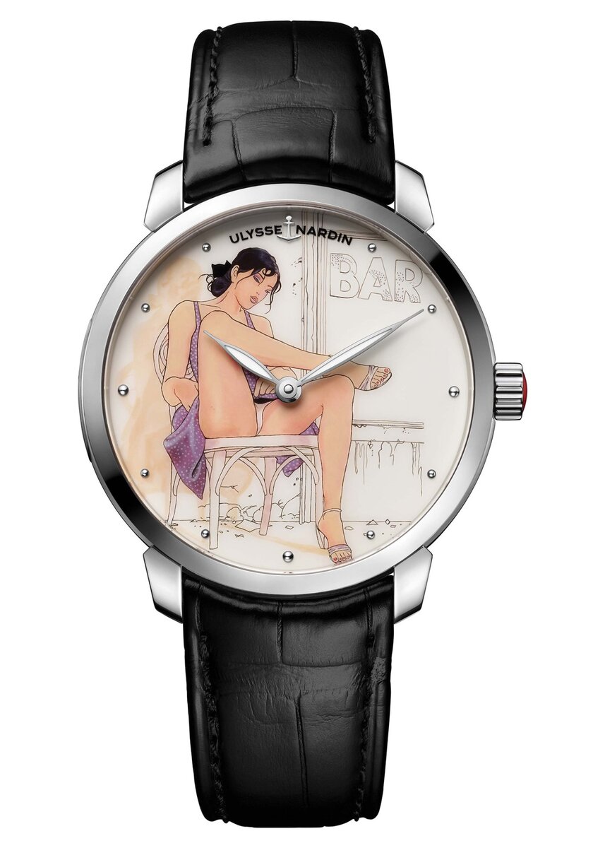 В честь 40-летия эротического комикса Мило Манара "Клик" Ulysse Nardin выпустил ограниченную серию из трех моделей с эротическим сюжетом.