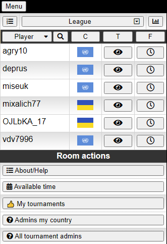 После начала любого внутреннего турнира программа Backgammon Studio Heroes автоматически создает комнату (Room), где можно увидеть ники всех ближайших соперников по турнирам. Комнаты имеют название в зависимости от вида турнира: Возникает вопрос - а как договориться с соперниками о времени начала матча? Простые способы Во-первых, можно периодически заходить на сайт и смотреть, не появилась ли кнопка с ником соперника? Тогда можно нажать на эту кнопку и вызвать соперника на матч. После матча ник соперника исчезнет из этого списка. Во-вторых, можно нажать на кнопку с изображеним часов и посмотреть на самую верхнюю строку Opponent last login. Там указана дата, когда соперник был на сайте в последний раз. Если это было сегодня или вчера, то, скорее всего, соперник часто заходит на сайт и есть большая вероятность, что через некоторое время вы одновременно окажетесь на сайте и сыграете. Если же соперник давно не был на сайте, то используйте встроенный механизм согласования времени. Согласова