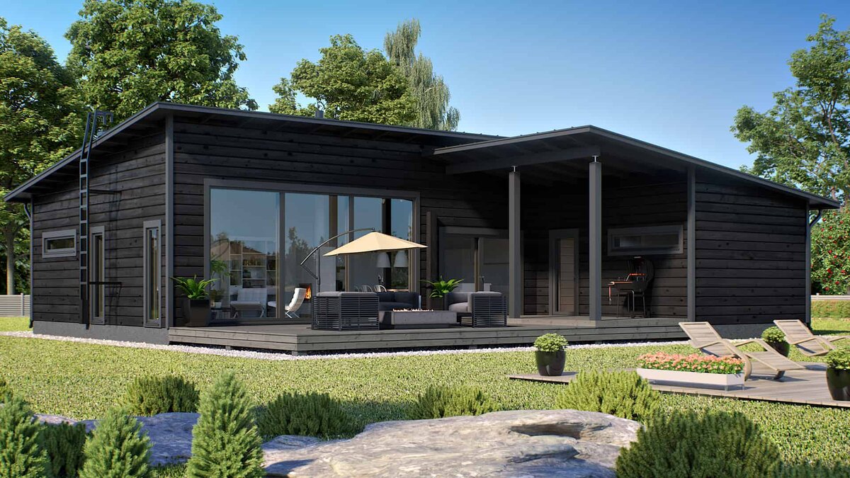 Современные деревянные бани отличаются простыми, четкими линиями с большими окнами, лишенными крупной декоративной отделки. Эти постройки в современном стиле обычно имеют почти плоские, остроконечные или односкатные крыши, симметричные формы. Перед вами современная, стильная модель дома-бани,