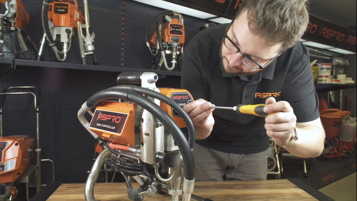 Аппарат стал хуже раскрывать факел, терять пиковое давление, издавать странные звуки… Нужно что-то делать! В этом материале расскажем аккуратным и внимательным строителям, как правильно самостоятельно диагностировать аппарат. Если забота о технике для вас не пустой звук, обязательно прочитайте наши рекомендации. Самодиагностику окрасочного аппарата следует начинать с осмотра маслозаливной горловины. На ней не должно быть ничего, кроме масла. При появлении на ней следов краски, необходимо заменить уплотнительные кольца. *Видеоуроки о замене кольц есть на нашем YouTube-канале. Далее можно произвести осмотр входного клапана. Для этого необходимо снять краскоприемную систему и корпус входного клапана. Он должен быть чистым, шар должен быть цельным, а седло должно иметь ровную плоскость. При наличии повреждений, деталь требуется заменить. Далее можно осмотреть кривошипно-шатунный механизм. Для этого снимаем переднюю крышку, проверяем подшипник на люфт и проводим общий осмотр детали. Если во