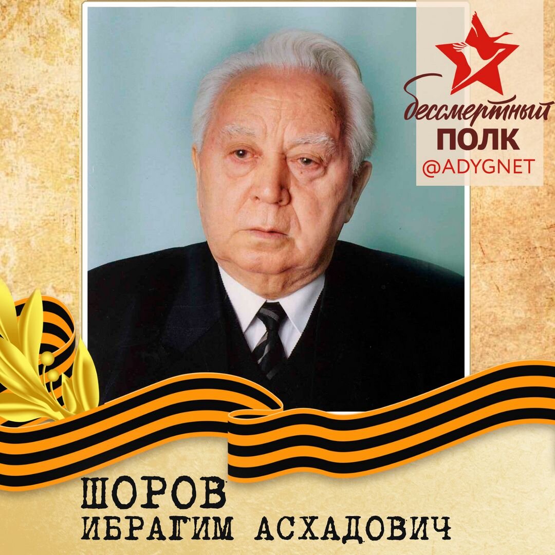 Шоров Ибрагим Асхадович - доктор педагогических наук, профессор, заслуженный деятель науки Республики Адыгея, академик Адыгской Международной академии наук, в 1978-1980 гг. - заведующий кафедрой педагогики и психологии, с 1989 г. - профессор кафедры педагогики. Ибрагим Асхадович Шоров родился в ноябре 1924 г. в ауле Блечепсин Кошехабльского района Республики Адыгея. До войнй успел поработать учителем в аульской школе и секретарем сельсовета. В апреле 1943 г. он был призван в Советскую Армию, направлен в поселок Прохладный КБАССР, в 106-й армейский запасной полк, затем в Орджоникидзевское пехотное училище в столице Северной Осетии. 1 ноября 1943 г. в составе 182-го гвардейского стрелкового полка 62-ой гвардейской стрелковой дивизии Ибрагим Асхадович попадает на фронт. 15 декабря этого же года в бою под городом Черкассы (село Ясная Поляна) Ибрагим Асхадович был ранен в колено осколком. В полевом госпитале он пробыл 20 дней, после чего вернулся на фронт в свой родной полк, который был к т