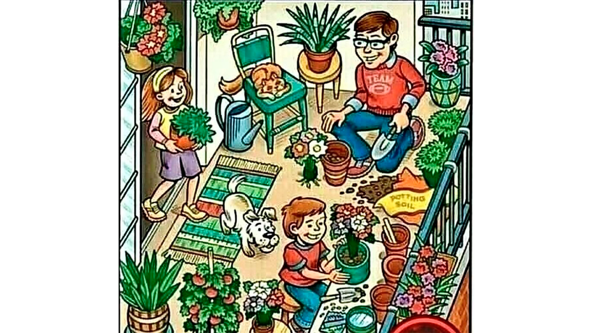 Мы нашли необычный тест, который одновременно проверяет и внимательность человека, и его смекалку. На картинке ниже семья работает в саду под чутким присмотром питомцев. На этом изображении затерялся банан. Поможете его найти? Примените смекалку, потому что банан находится в неочевидном месте. Например, ищите фрукт по цвету, или по форме — тогда у вас точно получится! Подсказка: банан находится на одном из живых существ: мужчине, девочке, мальчике, кошке или собаке. Пролистайте ниже, когда будете готовы увидеть ответ Правильный ответ: банан находится на голове девочки и выглядит как ободок для волос.