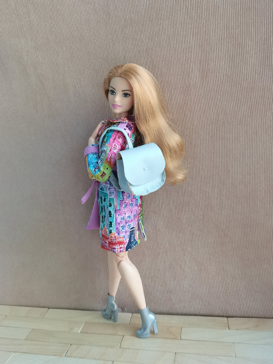 Добрый пятничный вечер! Этот плащик для куклы я сшила еще на прошлой неделе. Но никак не складывался образ у меня в голове. То я хотела сшить джинсовый комбинезон, то обтягивающее платье, то расклешенные джинсы, то колготки из трикотажной сетки. Из всех идей воплотила только рюкзачок. С остальным пока не определилась) Рюкзачок получился так себе и я не хотела его показывать. Но все же решила, что для первого раза сойдет. Следующий обязательно получится лучше) Сшит он по собственной выкройке. Ткань для плаща я долго лелеяла) Очень уж она мне понравилась. Люблю такие сказочные принты) Возможно ткань на пиджаке или курточке смотрелась бы интереснее, но я решила сшить плащ. Я вообще очень люблю плащи, как предмет гардероба. Но в этот раз у меня осталось немного ткани, так что возможно вы ещё увидите другую одежду из этой ткани. Но не скоро. У меня полно других красивых принтованных тканей))) Теперь Тамика ждет свой не менее яркий наряд. Ей буду шить джинсовую курточку и юбку. Ес