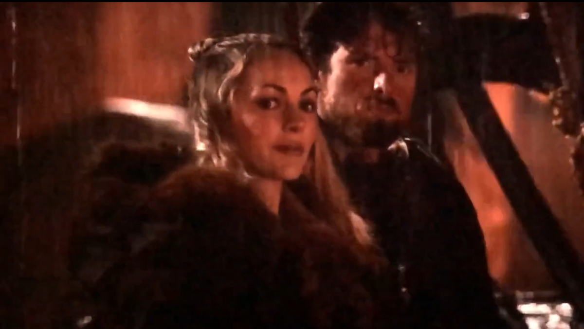 Между делом гасконец знакомится и с Констанцией. В одном из отзывов кто-то возмущался – «фрейлина королевы и вдруг – прачка!» Вот что значит накопление экранизаций, уходящих далеко от оригинала, некоторые и не знаю, что Констанции так и положено возиться с бельем, она – кастелянша королевы. Но вот с другой стороны – по дворцу она идет как-то слишком смело, для представительницы третьего сословия, и, правда, как фрейлина, с гордой посадкой головы.