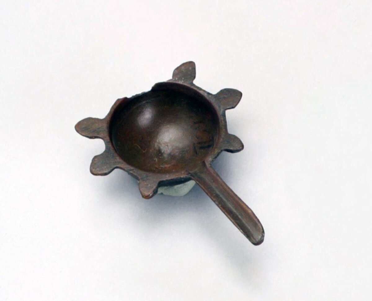 Тигель на ножках Золотая Орда, Сарай Берке, XIV в. Да-да-да, это тигель, а не светильник или братина. Его размеры 2х3.7х7.5 см, то есть отлить можно что-то не очень большое. Сделан он из бронзы, а это значит, что его использовали для меди, золота или серебра... Вряд ли в нем плавили свинец для пращей или железо (разве что детали для упряжи ?), все же он очевидно предназначен для производства ювелирных изделий. Сарай Берке - это средневековый город в низовьях Волги, столица Золотой Орды с начала XIV до XV века. Обширные раскопки в тех места велись еще в XIX веке под контролем Императорской Археологической комиссии. Данный тигель поступил в музей в 1860-х гг. Сейчас экспозицию, посвященную истории и культуре Золотой Орды можно видеть в Зимнем дворце на первом этаже, например в зале 68. А подготовиться к визиту в музей можно с помощью программы виртуальный визит на сайте Эрмитажа. Удалось угадать?