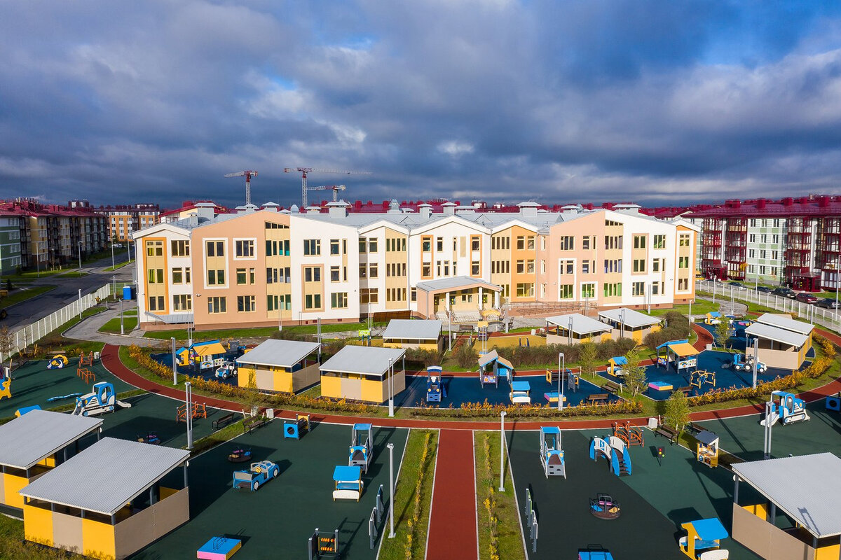 Чаще всего детские сады в России выглядят одинаково: двух- или трехэтажное здание за ограждением, стандартные детские площадки. Но в последнее время все чаще можно встретить действительно интересные и привлекательные проекты. Именно такой садик несколько месяцев назад открылся в Пушкинском районе Петербурга. Новый детский сад на 240 мест с бассейном отличается оригинальной «альпийской» архитектурой — он словно состоит из домиков в стиле «шале», каждый из которых имеет двускатную крышу и отдельный вход. Застройщик не побоялся увеличения стоимости строительства и воплотил в жизнь проект, на который приятно смотреть снаружи и комфортно находиться внутри, это отмечают как сотрудники детского учреждения, так и родители воспитанников. В такой детский сад с удовольствием идут дети — это результат и работы строителей, и педагогов.