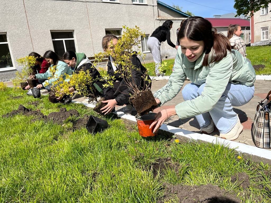 После торжественной части студенты присоединились к Всероссийским акциям «Цветы Победы» и «Сад Памяти». На территории колледжа ребята высадили саженцы и цветы, каждый из которых - зеленый памятник в честь об ушедших в вечность защитниках Родины.
