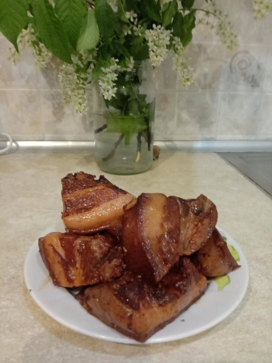 Щековина в луковой шелухе Щековина - 1 килограмм Вода - 1 литр Лавровый лист - 3 штуки Перец горошком душистый -10 штук Перец черный горошком -10 штук Соль -5 столовых ложек Луковая шелуха (я беру столько, чтобы было закрыто дно кастрюли) Щековину нарезаем на порционные кусочки. Луковую шелуху хорошенько промываем и перекладываем в кастрюлю. Наливаем 1 литр воды. Добавляем лавровый лист, перец и соль. Ставим на огонь. Доводим до кипения. После того как все закипит укладываем в кастрюлю кусочки щековины. Она должна быть полностью покрыта водой. Сверху прижимаем тарелочкой. Варим на тихом огне 30 минут после закипания. Выключаем огонь. Не открывая крышку, оставляем до полного остывания. Вынимаем щековину, обсушиваем. По желанию можно натереть приправами по вкусу, например черный перец, чеснок, паприка.
