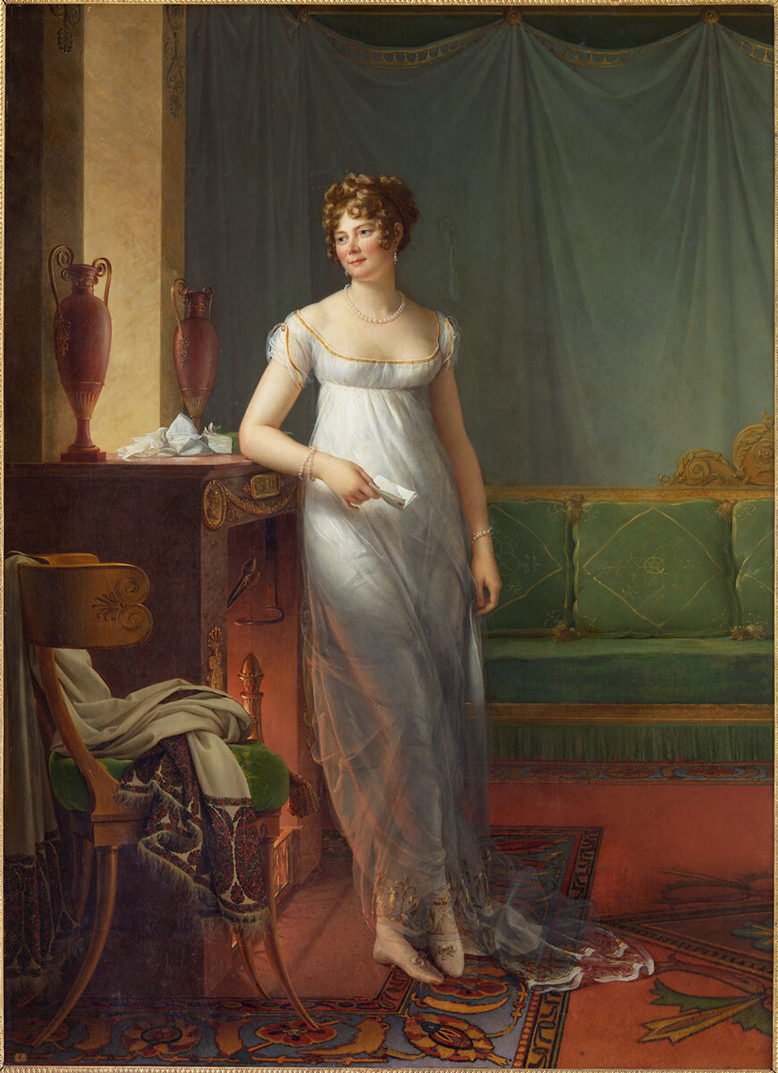 К тому времени, когда Франсуа Жерар написал картину "Мадам де Талейран" в 1804 году, стиль был изменен в ответ на призыв Бонапарта вернуться к моральному порядку.
