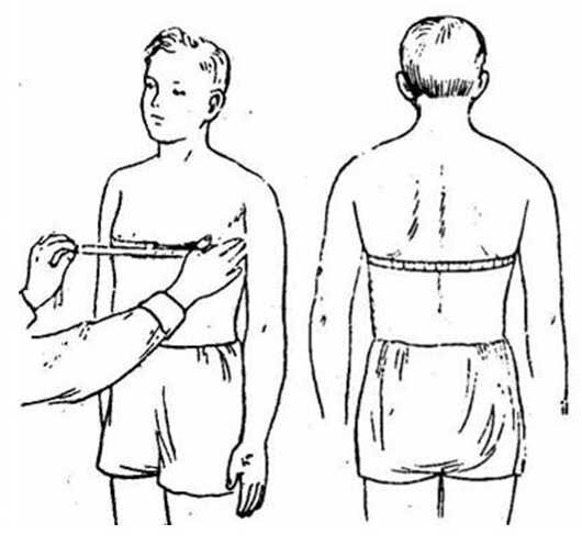 Например, необходимо было, чтобы размер окружность его грудной клетки должна равняться не менее, чем размеру его полуроста. У меня лично, при росте 177 см этот параметр равняется 101 (конечно, в былые времена было поменьше).
