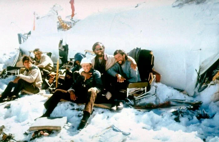 Когда смотришь на эти фотографии в первый раз, думаешь, что в них нет ничего необычного. Однако, узнав при каких обстоятельствах они были сделаны, уже так не кажется. Становится жутко: в кадр попали по-настоящему ужасные события… Не делайте о фото выводы лишь на первый взгляд! Некоторые снимки из тех, что ниже, вселяют атмосферу ужаса и заставят вас этой ночью спать при включенном свете! Улыбающиеся люди на позитивном фото… Что может быть не так? Присмотритесь: заметили части от самолета? Они там, потому что на фотографии запечатлена группа выживших после авиакатастрофы в Андах, где рухнул самолет рейса 571 Уругвайских ВВС. Тогда почему же мы назвали этот снимок ужасным? Только самые внимательные сразу заметят достаточно жуткую деталь (мы скрыли этот фрагмент, чтобы не травмировать чувствительных людей) — человеческий позвоночник. На самом деле выжить люди выжили благодаря каннибализму… Злая ирония судьбы в том, что самолет рухнул всего в 18 милях от населенного пункта, но экипаж ошибс