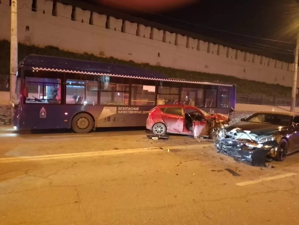 Итак, серьезное ДТП произошло в полночь на ул. Адмиралтейская,7. 24-летний водитель "Хёндай" врезался в стоящий автобус "Волгабас", после чего столкнулся с двигавшимся попутно автомобилем "БМВ" под управлением 28-летнего молодого человека (тот самый блогер). В результате пострадал виновник аварии и его пассажир - девушка 2002 года рождения. С травмами различной степени тяжести пострадавшие доставлены в больниц