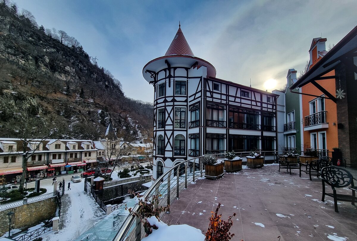 Летом отдых можно совмещать с прогулками по местным горным лесам. Между прочим, делать это можно не только пешком, но и на лошадях, и на квадроциклах, заодно испробовав местную самую длинную в Грузии зип-лайн трассу с верёвочным городом. Мы же приехали сюда зимой, как раз когда выпал не частый здесь снег. Причем выпал в большом количестве! Неожиданно это место превратилось в белую волшебную сказку!