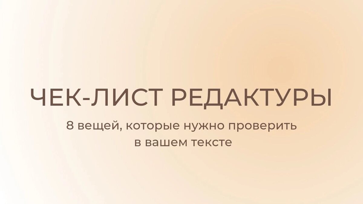 Поняла, что такой чек-лист нужен. Так что ловите! Но давайте в этот раз побольше реакций, чтобы я понимала, что не в пустоту пишу)) Итак, что проверяем после того, как написали текст? 1. Логику структуры текста. Все ли предложения и абзацы связаны между собой? Сквозь весь текст сквозит одна мысль? 2. Соответствие заголовка и текста. В тексте раскрывается то, что вы заявили в заголовке? Или где-то ушли не туда? 3. Лишние детали. Можно ли убрать воду и сделать текст еще лаконичнее? Нет ли фактов просто ради факта? Нет ли мыслей, которые повторяются, только разными словами? 4. Сложные и длинные предложения. Можно что-то перефразировать, сократить, упростить? 5. Архаизмы, канцеляризмы, клише. Есть что убрать? 6. Обороты со словом «который». Заменяем в тех случаях, когда это возможно. ❌ Она дала мне книгу, которая лежала на полке. ✔️ Она дала мне книгу с полки. 7. Лишние причастные и деепричастные обороты. ❌ Вскрикнув, она побежала в сторону дома. ✔️ Она вскрикнула и побежала в сторон