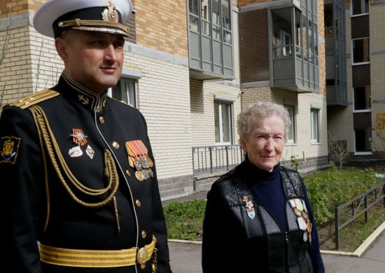 5 мая во дворе одного из домов на Юнтоловском проспекте Санкт-Петербурга состоялся миниатюрный парад. Торжественным маршем с Андреевским флагом под звуки военного оркестра Нахимовского военно-морского училища прошли военно-морские офицеры – слушатели военного института дополнительного профессионального образования ВУНЦ ВМФ «Военно-морская академия» (бывшие Высшие специальные офицерские классы ВМФ, созданные для повышения квалификации командирских кадров). Таким образом они поздравили с наступающим Днём Победы ветерана Великой Отечественной Валентину Уханову. 22 июня 1941 года Валентине Ухановой было всего 10 лет. Вместе со своей мамой она работала на барже, которая в составе Ладожской флотилии перевозила грузы различного назначения для блокадного Ленинграда и Ленинградского фронта по водной «Дороге жизни» - Ладожскому озеру с 1941 по 1944 годы. Валентина Фёдоровна была одна из самых юных матросов, принимавших участие в Великой Отечественной войне. Она не держала в руках оружия, но по