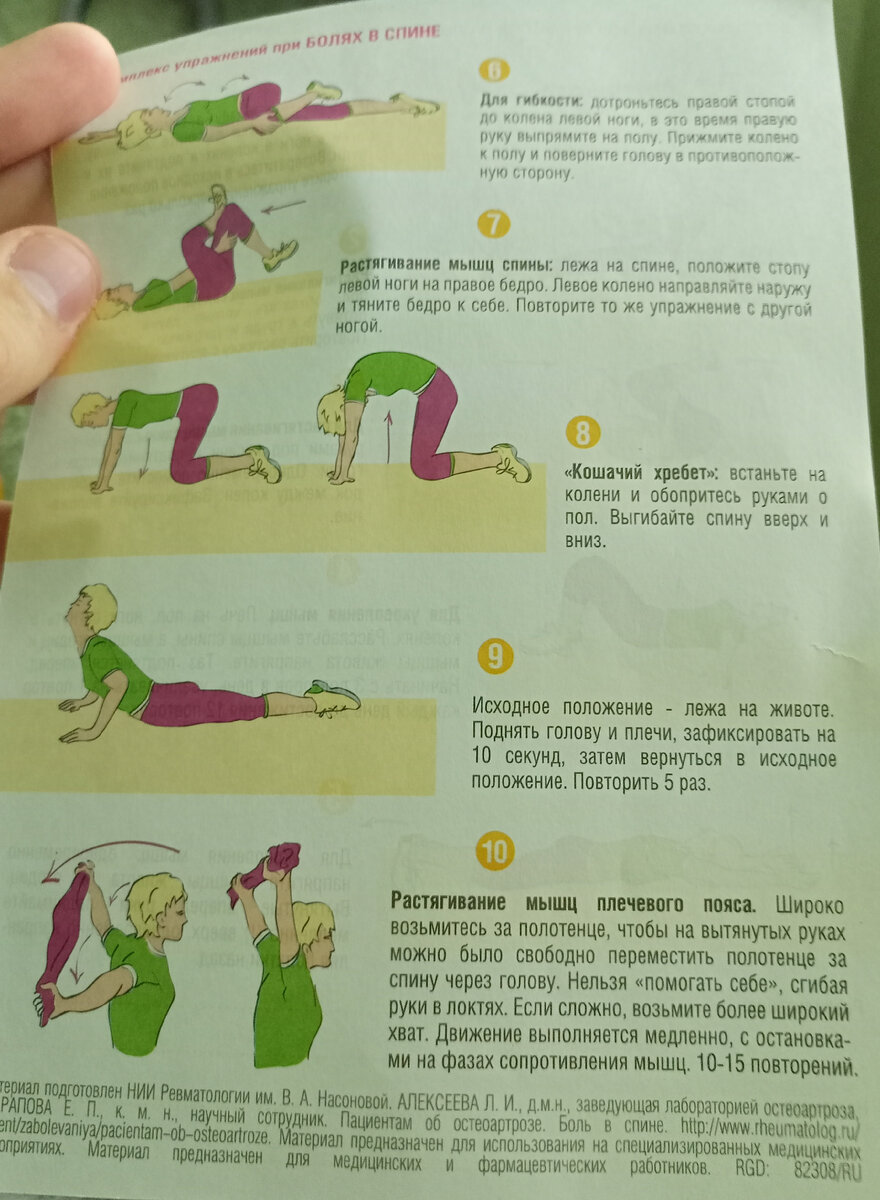Прошло 6-ть недель после операции. Первая часть тут:https://dzen.ru/a/ZC_OYByJ-3QVpCig Вести меня стала невролог. В общем отстояв очередь по записи час я попал к ней в кабинет. В выписке написано рентген контроль через 6-ть недель, она мне сказала что смысла его делать нет, на счет сидеть говорит можете ненадолго по 15 мин в корсете и дала мне брошюру как делать лфк Говорит что нельзя делать упражнения, где есть скручивание и те, которые на животе. Бассейн говорит рано, водить машину тоже,еще выписала лекарство ДОНА 1 пакетик в день 3 месяца. Что по личным ощущениям: надевать корсет поднимая таз мне до сих пор больно, поэтому надеваю его через бок. Утром после сна вообще боли нет потом в течении дня я ее чувствую только при подъеме с кровати и когда двигаешь тазом лежа на ней. Присутствует онемение мизинца на левой ноге, когда ложишься на левый бок и немного как будто немеет ляжка спереди так же на левой ноге, когда стоишь (ну то бывает, то нет). Хожу в туалет уже без инвалидного ст